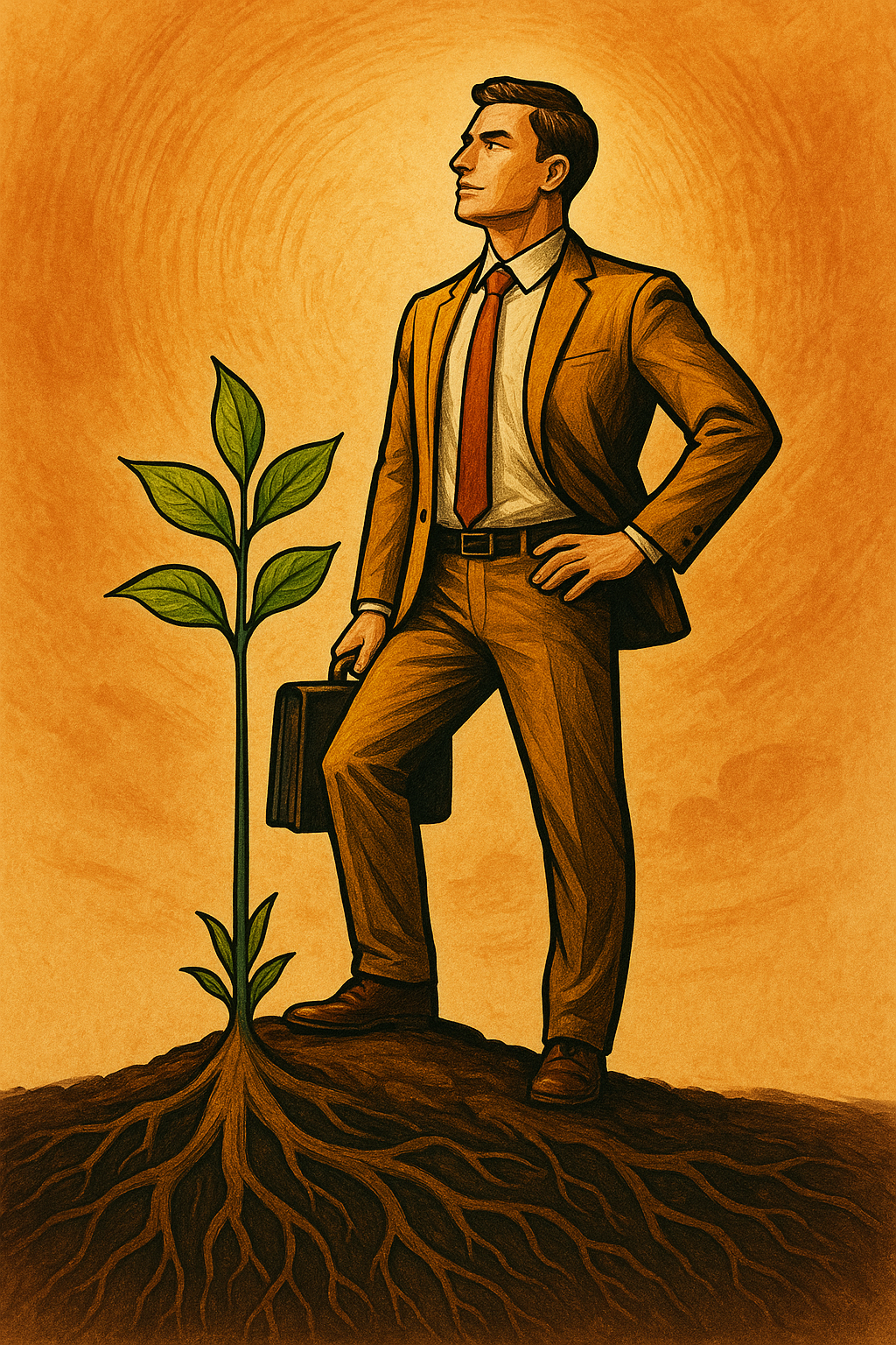 Empreender é fincar os pés na terra, firmar raízes na realidade e nutrir sonhos com visão e ação. Como uma árvore que cresce sólida, o verdadeiro empreendedor entende que o sucesso floresce debaixo do solo – nas ideias invisíveis, na preparação silenciosa, na perseverança diária. Ele carrega consigo a força da terra – ‘Grouden’ – e ergue-se firme diante dos desafios, olhando para o futuro com propósito. Cada passo, cada decisão, é como uma raiz que se expande, sustentando um crescimento que não apenas aparece, mas que perdura. Essa é a jornada: enraizar para crescer.